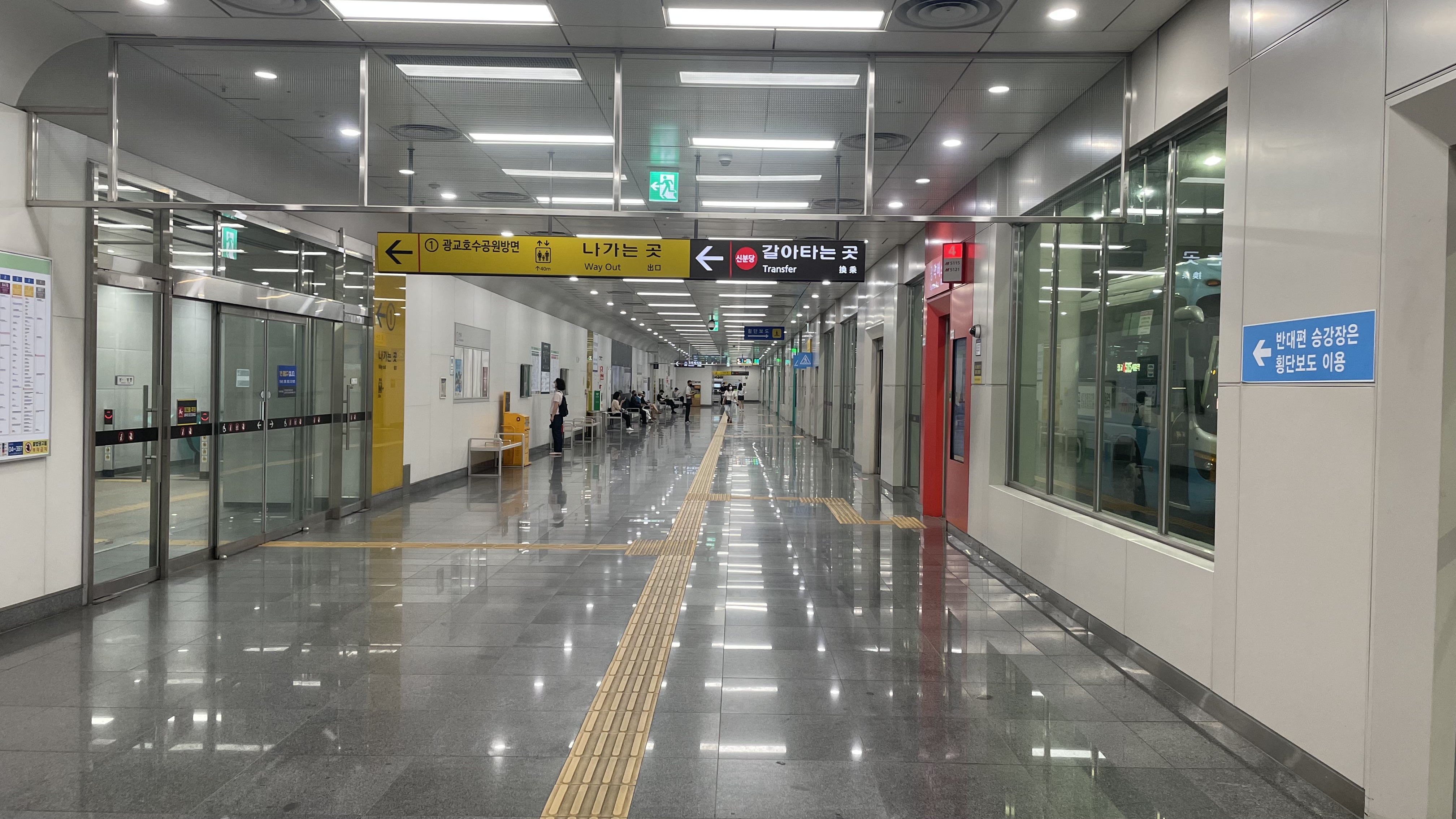 광교중앙역에서 외부출입구로 나오다보면 중간에 버스로 환승 할 수 있는 통로가 있습니다.