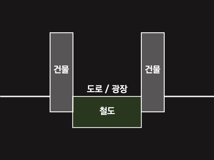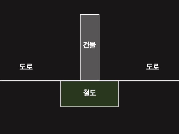우리나라 대부분의 지하철역이 도로 하부에 위치하고 있습니다. 공사 편의 및 토지보상 문제가 가장 큰 이유이죠.
